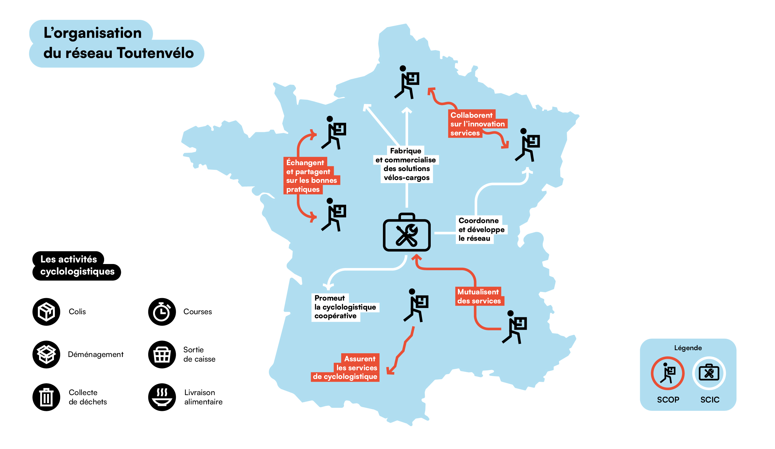 Toutes ces structures indépendantes développent des communs à travers la Scic Toutenvélo qui gère :